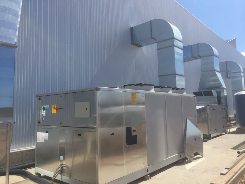 Descrizione: Condizionamento sala lavorazione e raffreddamento vasca gelida per calibratrice ciliegie